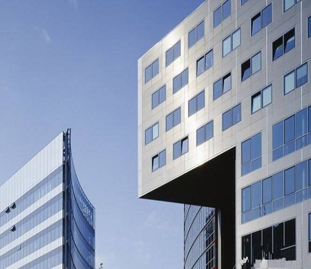 具有金屬效果的氟碳產品在裝飾性方面要比實色漆優(yōu)異許多,因為油漆中加入了金屬粉,使得漆膜表面呈現(xiàn)出金屬閃光的質感,特別是在光照條件下,具有閃閃發(fā)光的特殊效果,在裝飾性要求較高的項目中應用比較廣泛,而普通的實色漆則適用于一般的裝飾防護。